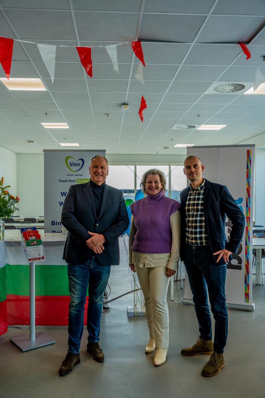 Op de foto: wethouder Mariëlle van Alphen (midden) en Roy Paalman (Director HRM Policies & Labour Affairs Benelux Vion) (links) en Ward Dinter (Vestigingsmanager Vion) (rechts).