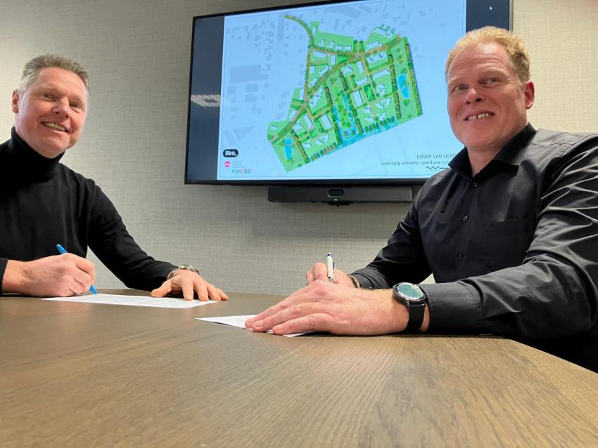 Wethouder Wim van der Zanden en projectontwikkelaar Mark van Doorn van Blink B.V. ondertekenen de anterieure overeenkomst.